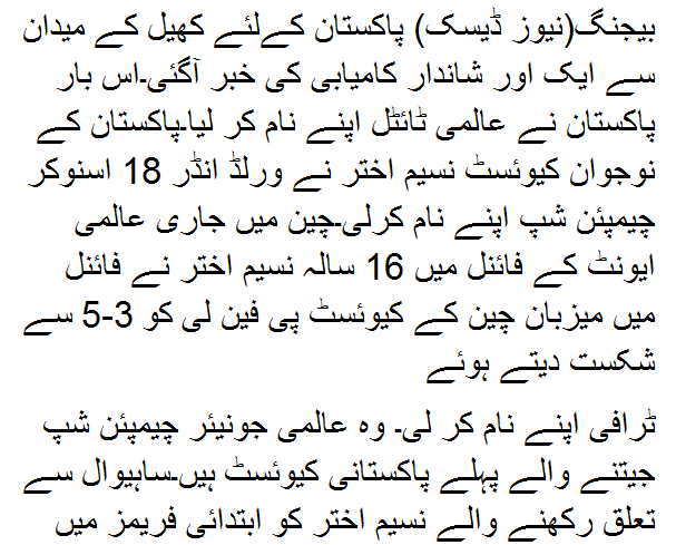 World u-18 snooker Championship in the name of Pakistan Posted by Unknown on July 12, 2017 loading...